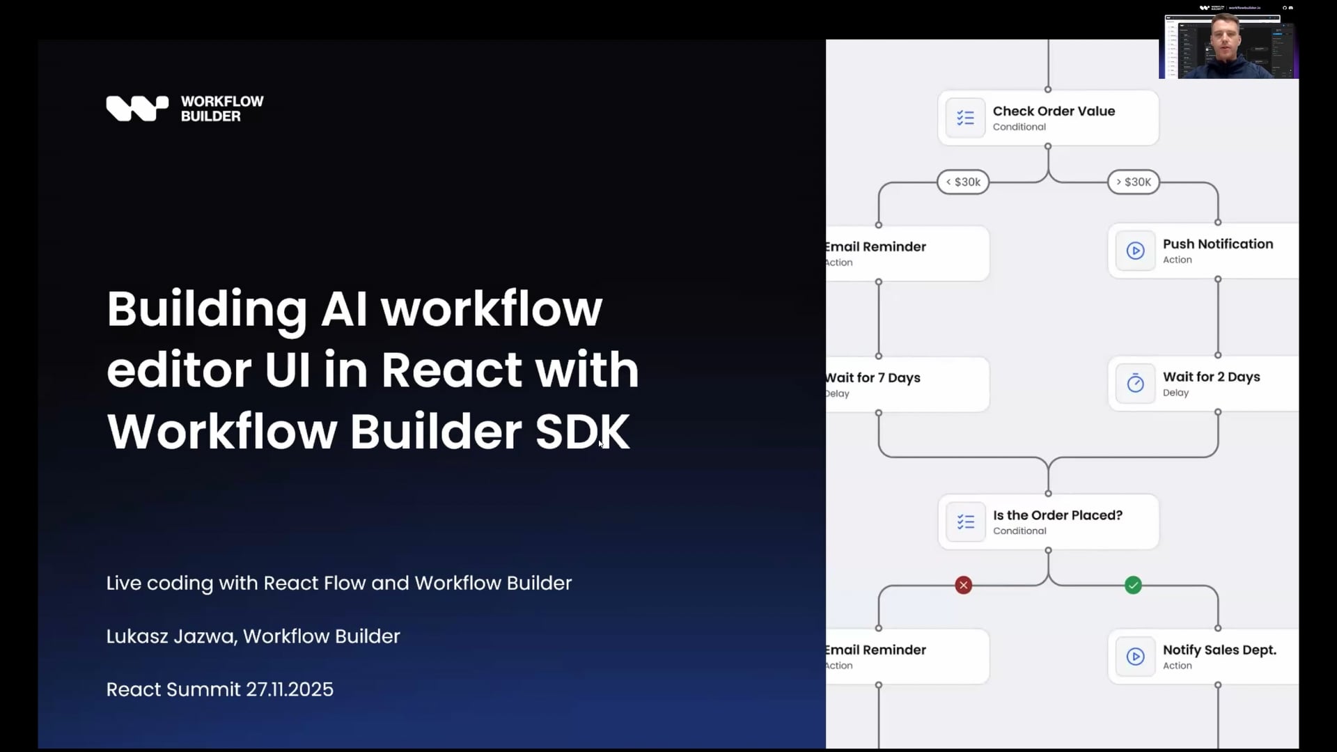 - Práctico: Workflow Builder SDK: Construir una interfaz de editor de flujo de trabajo de AI del mundo real usando nuestro SDK y la base de React Flow.
