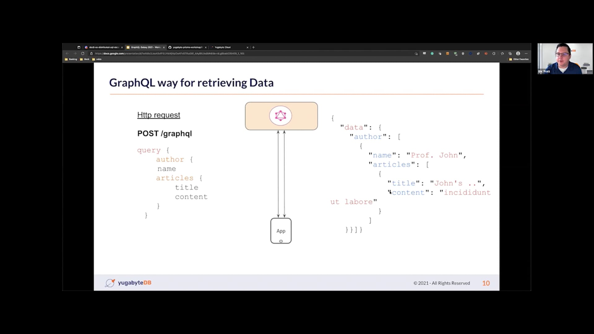 YugateDB es una popular base de datos SQL distribuida de código abierto diseñada y construida específicamente para aplicaciones nativas de la nube. YugateDB permite a los desarrolladores escalar fácilmente las cargas de trabajo de RDBMS para aplicaciones a escala de internet, al mismo tiempo que maneja nativamente las interrupciones de la infraestructura en la nube y admite implementaciones en múltiples regiones y centros de datos. En este masterclass, los participantes obtendrán experiencia práctica implementando aplicaciones GraphQL utilizando tres de los motores GraphQL más populares: Hasura, Prisma y Spring GraphQL, conectados a la base de datos YugateDB.