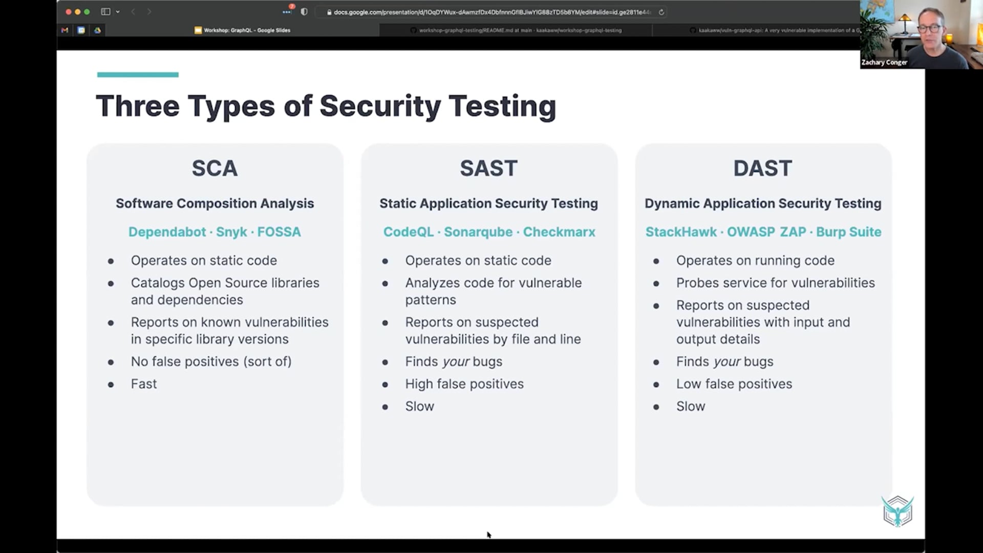 Todos hemos escuchado el revuelo sobre llevar la seguridad de las aplicaciones a manos de los desarrolladores, pero si eres como la mayoría de las empresas, ha sido difícil hacer que esto sea una realidad. No estás solo: establecer la cultura, los procesos y las herramientas necesarias para lograrlo es difícil, especialmente para aplicaciones sofisticadas como aquellas respaldadas por GraphQL. En esta sesión técnica práctica, Zachary Conger, Ingeniero Senior de DevOps de StackHawk, te guiará sobre cómo proteger tus APIs de GraphQL contra vulnerabilidades utilizando pruebas de seguridad automatizadas. Prepárate para ponerte manos a la obra con las pruebas automatizadas de seguridad de aplicaciones.