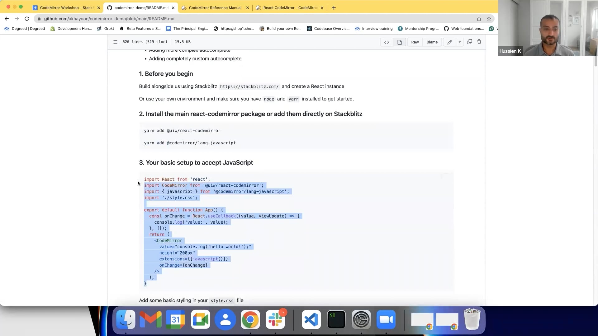 En esta masterclass, discutiremos todos estos puntos finos mientras pasamos por un ejemplo general de construcción de un editor de código usando CodeMirror en React. Todo mientras compartimos algunas de las sutilezas que nuestro equipo aprendió sobre el uso de esta biblioteca y algunos problemas que encontramos.