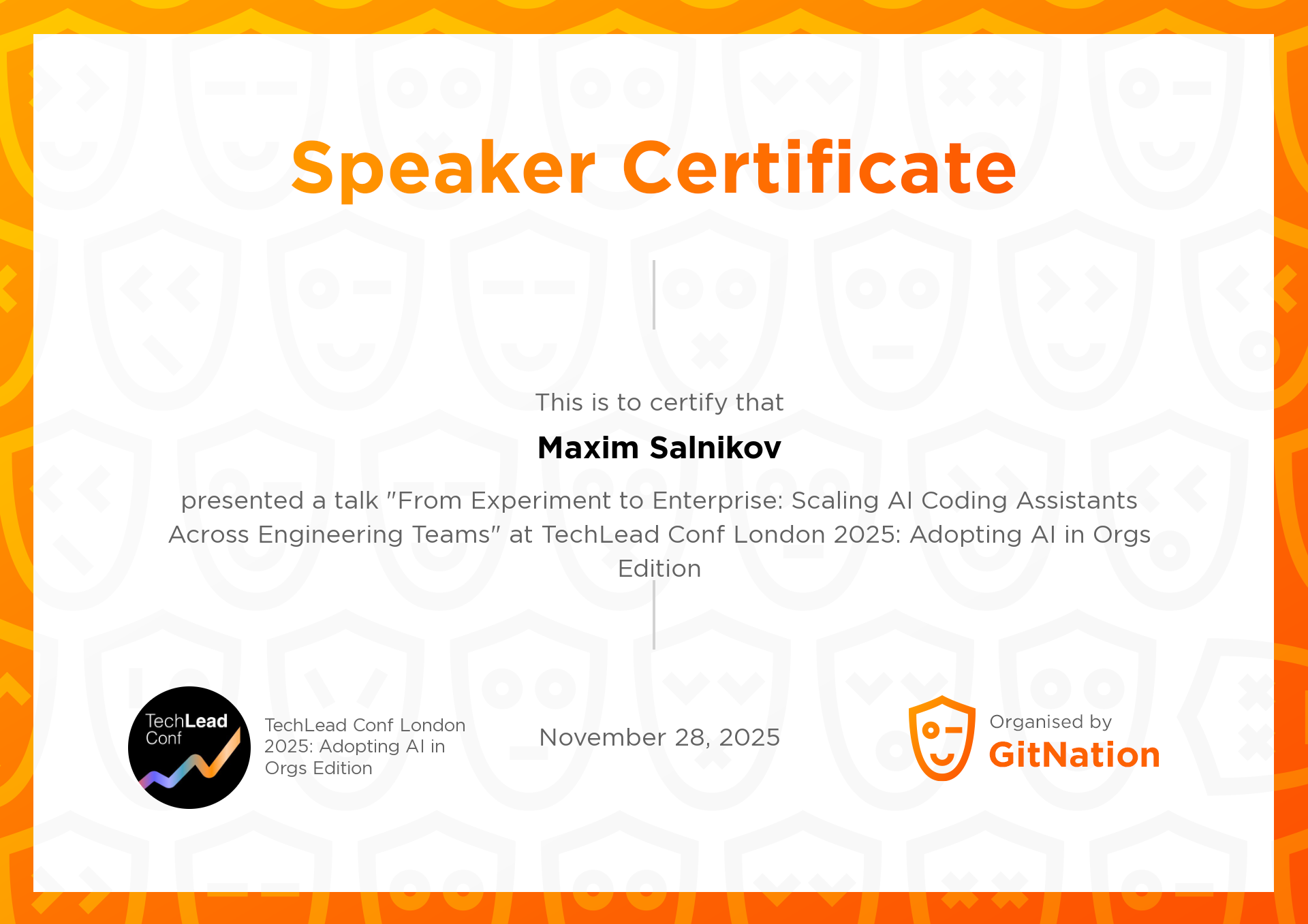 Maxim Salnikov is a tech and cloud community enthusiast based in Oslo. With over two decades of experience as a web developer, he shares his extensive knowledge of the web platform, cloud computing, and AI by speaking at and providing training for developer events worldwide. By day, Maxim plays a crucial role in supporting the development of cloud and AI solutions within European companies, serving as the leader of developer productivity business at Microsoft. During evenings, he can be found running events for Norway's largest web and cloud development communities. Maxim is passionate about exploring and experimenting with Generative AI possibilities, including AI-assisted development. To share his insights and connect with like-minded professionals globally, he founded and organized the inaugural Prompt Engineering Conference, the first of its kind on a global scale.